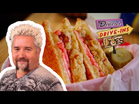 Guy Fieri Tries CRAB CAKE Grilled Cheese | Diners,...