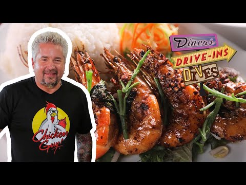 Guy Fieri Eats Garlic Kauai Shrimp | Diners, Drive-Ins...