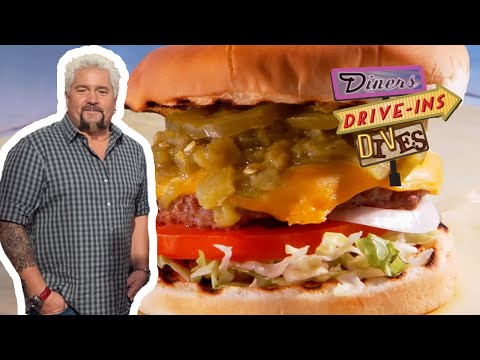 Guy Fieri Eats an Insane Green Chile Cheeseburger |...